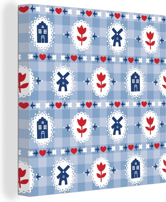 bol.com | Illustratie van een Delfts blauw patroon met typisch Nederlandse symbolen 90x90 cm -...