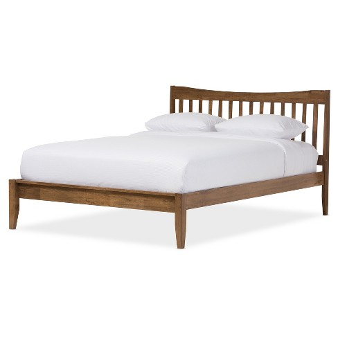 Edeline Mid Century Modern Solid Wood Curvaceous Slatted Platform Bed Queen Walnut Brown Baxton Studio Target