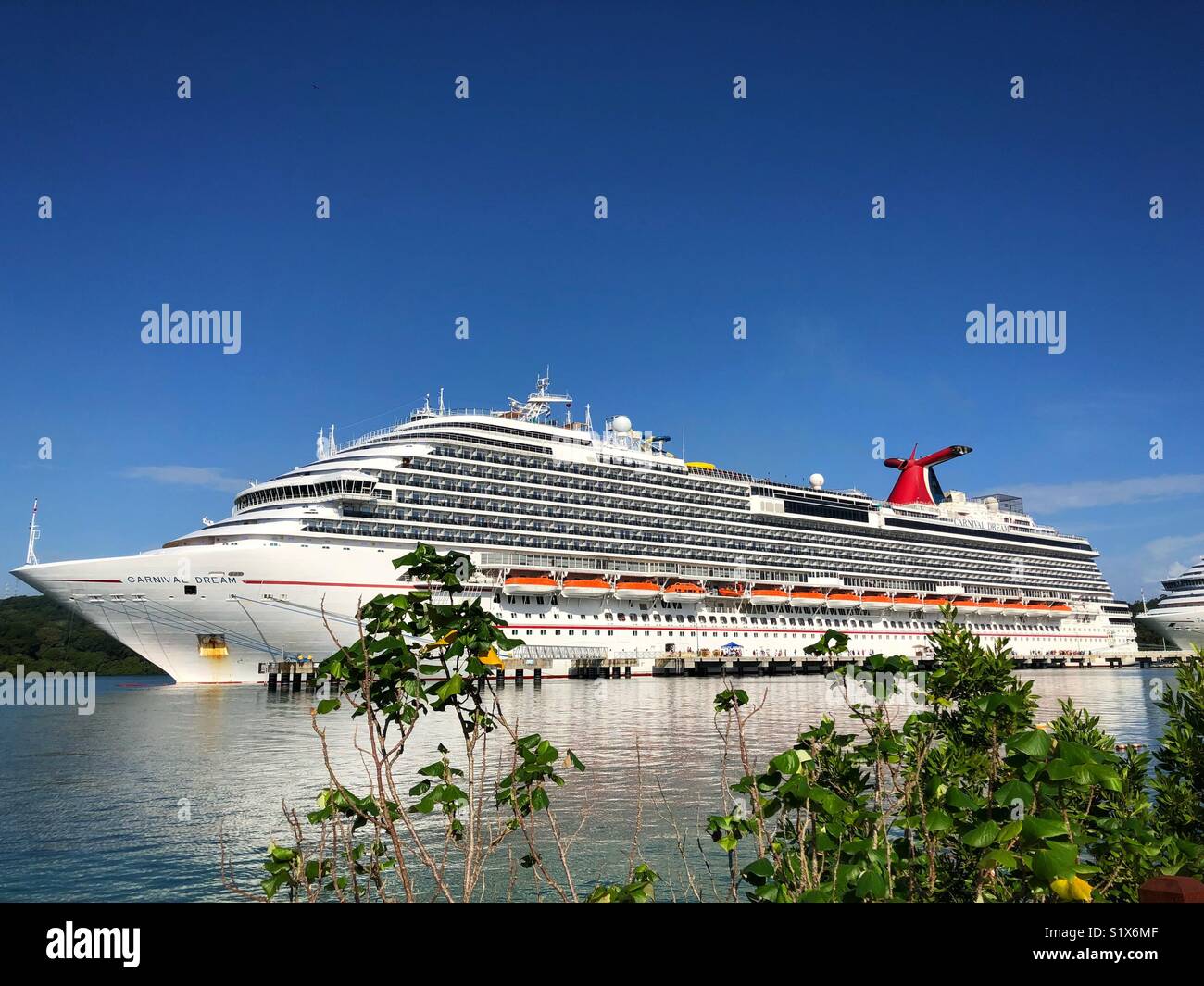 Carnival Crociera Da Sogno Nave Ormeggiata In Mogano Della Crociera Della Baia Del Porto Isla Roatan Honduras Foto Stock Alamy