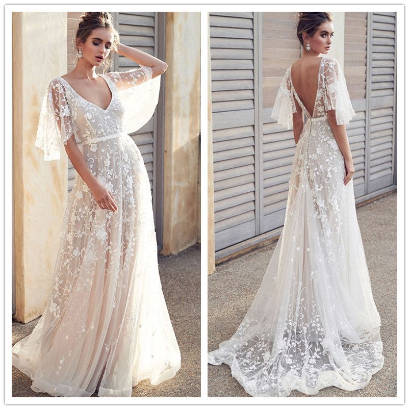 Discount A Line Lace Beach Boho Wedding Dresses V Neck Backless Bridal Party Gown Elegant Women Wedding Gowns Wedding Dresses Vintage Inspired Wedding Simple Dresses From Bridalparty 44 71 Dhgate Com