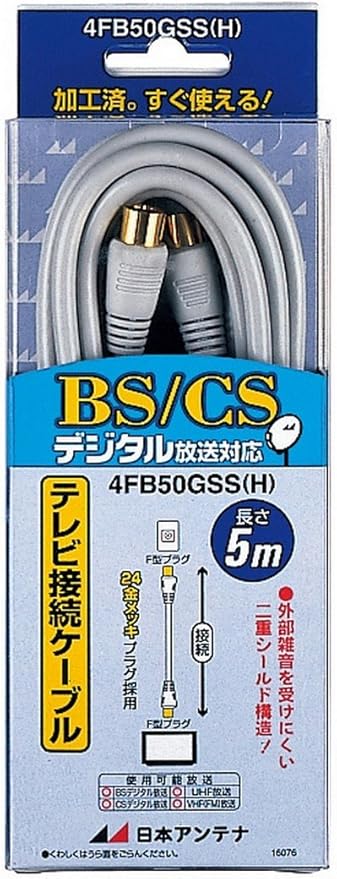 amazon co jp 日本アンテナ テレビ接続ケーブル s4cfb プッシュプラグモデル 両端ストレートプラグ 5m ライトグレー 4fb50gss h 家電 カメラ