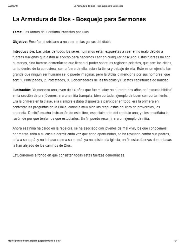 La Armadura de Dios - Bosquejo Para Sermones | Demonios | Oración