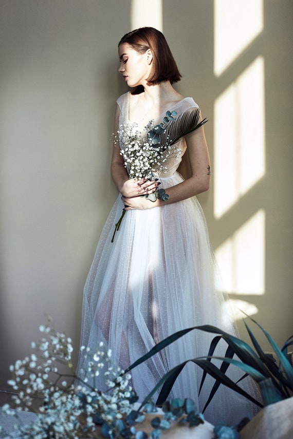 Tulle Wedding Dress Lace Wedding Dress Polka Dot Lace Etsy