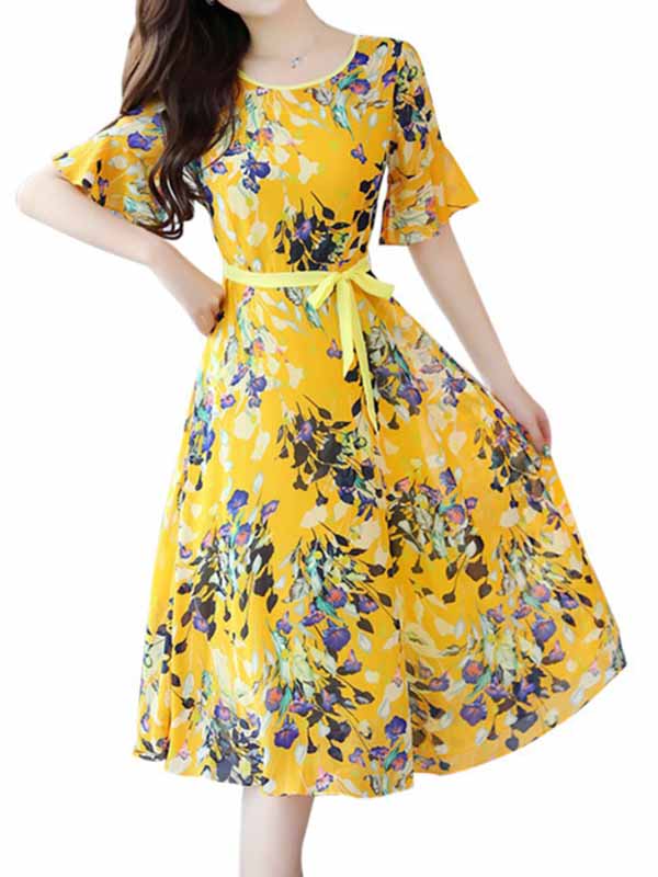 Summer Dresses For Women Clearance Casual Printing Short Sleeve Mini Dress Princess Dress For Anniversary Party Valentines Day Yellow Xl Accessories Supplies Bag Case Accessories