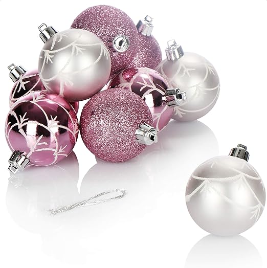 com-four® 9X Weihnachtskugel - Christbaumkugeln aus bruchsicherem Kunststoff für Weihnachten - Baumschmuck für den Christbaum - Christbaumschmuck Ø 6 cm (rosa): Amazon.de: Küche & Haushalt